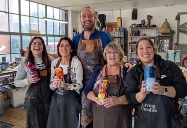 Create a large, artistic, and colorful candle! Choose the colors you love and make an artistic candle in a juice or milk carton! At each step, follow the artisan’s advice, who will closely monitor the process and guide you throughout the creation. Discover the unique techniques of Living Candles to make your candle 100% original and one-of-a-kind.