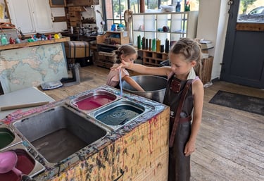 Come create decorative wax objects! This workshop includes making a customizable dipped candle in the colors and shape of your choice. It also includes creating a wax handprint, a process guided by the artisan who dips your hand into melted wax, alternating with cold water to create a perfect replica of your hand.